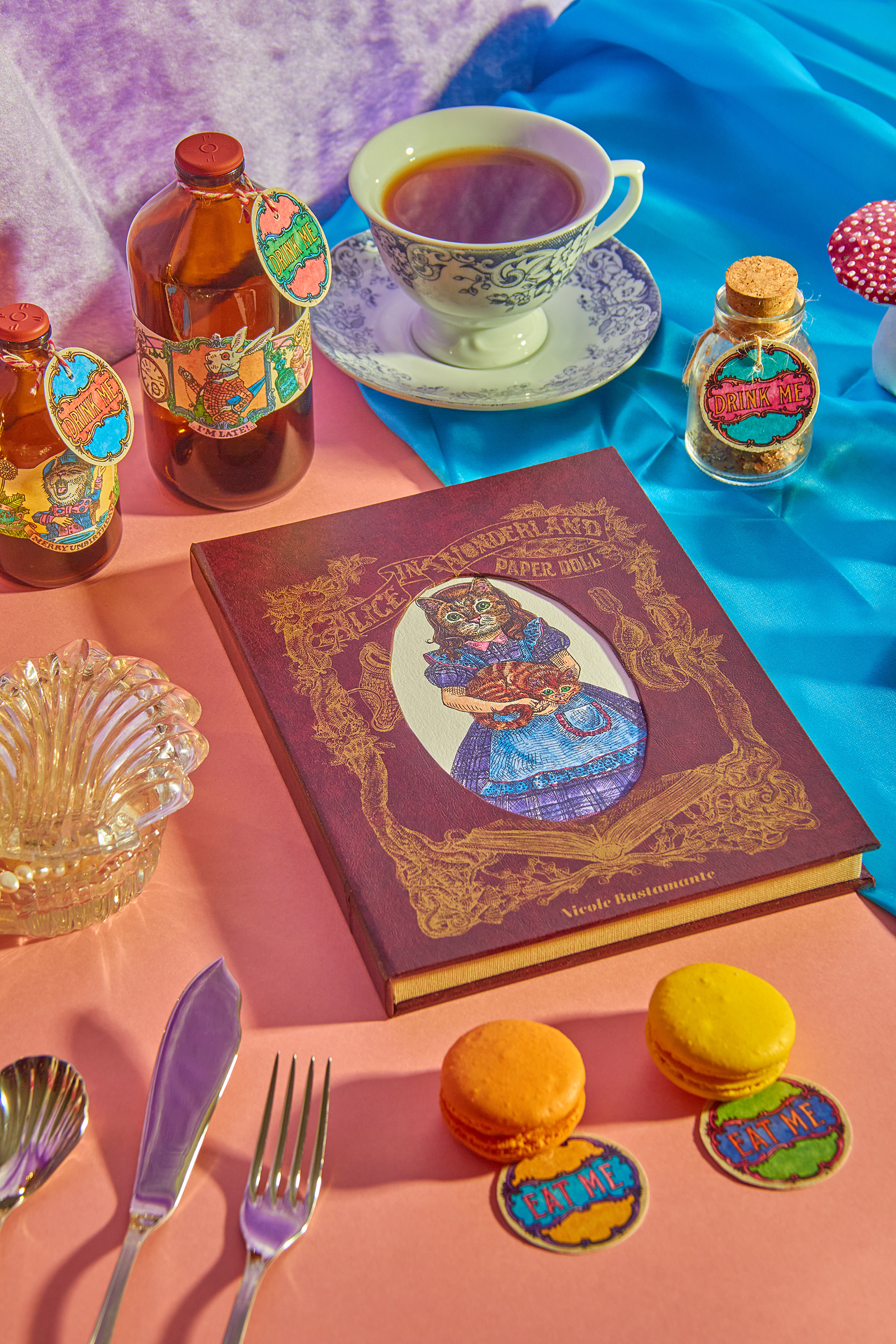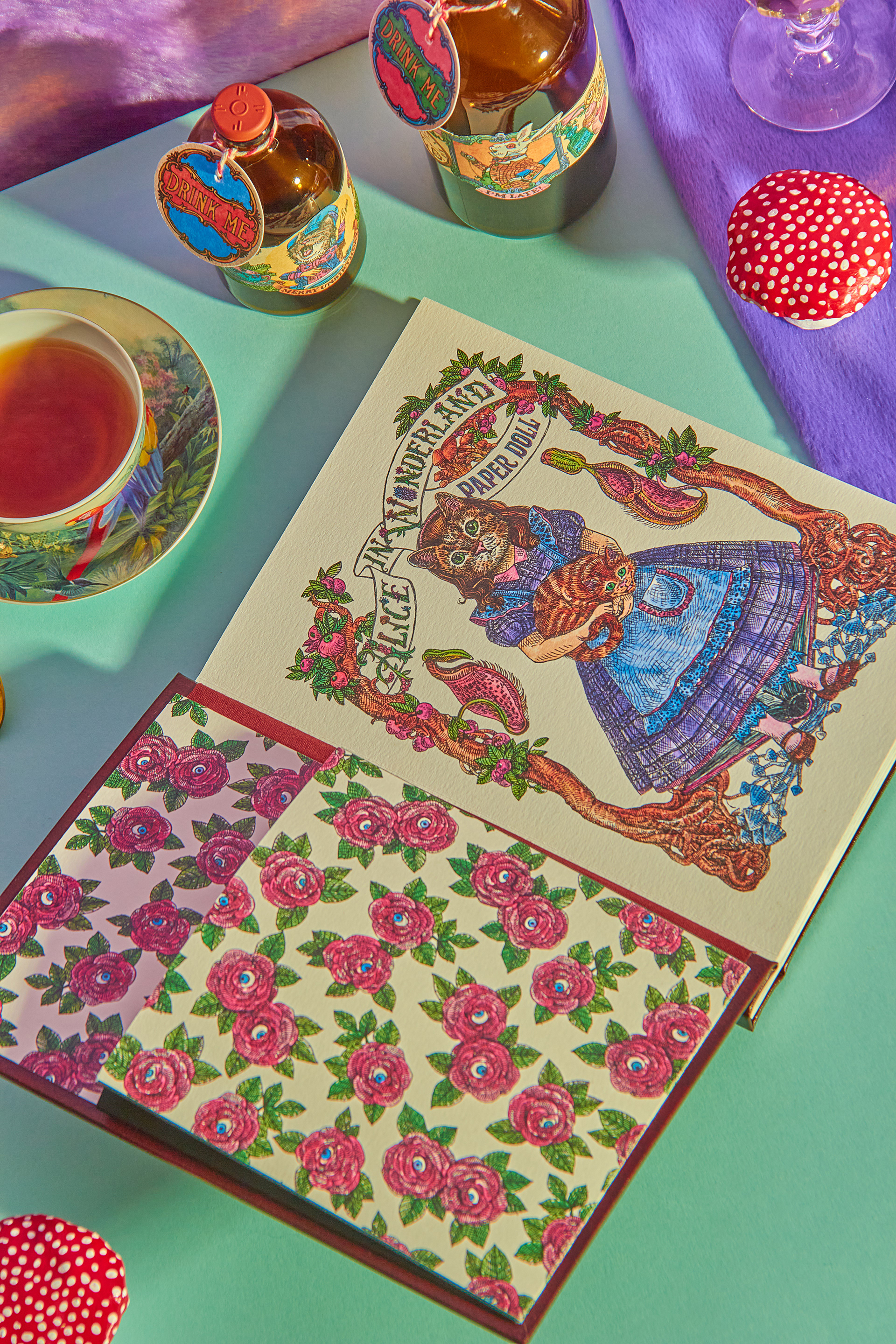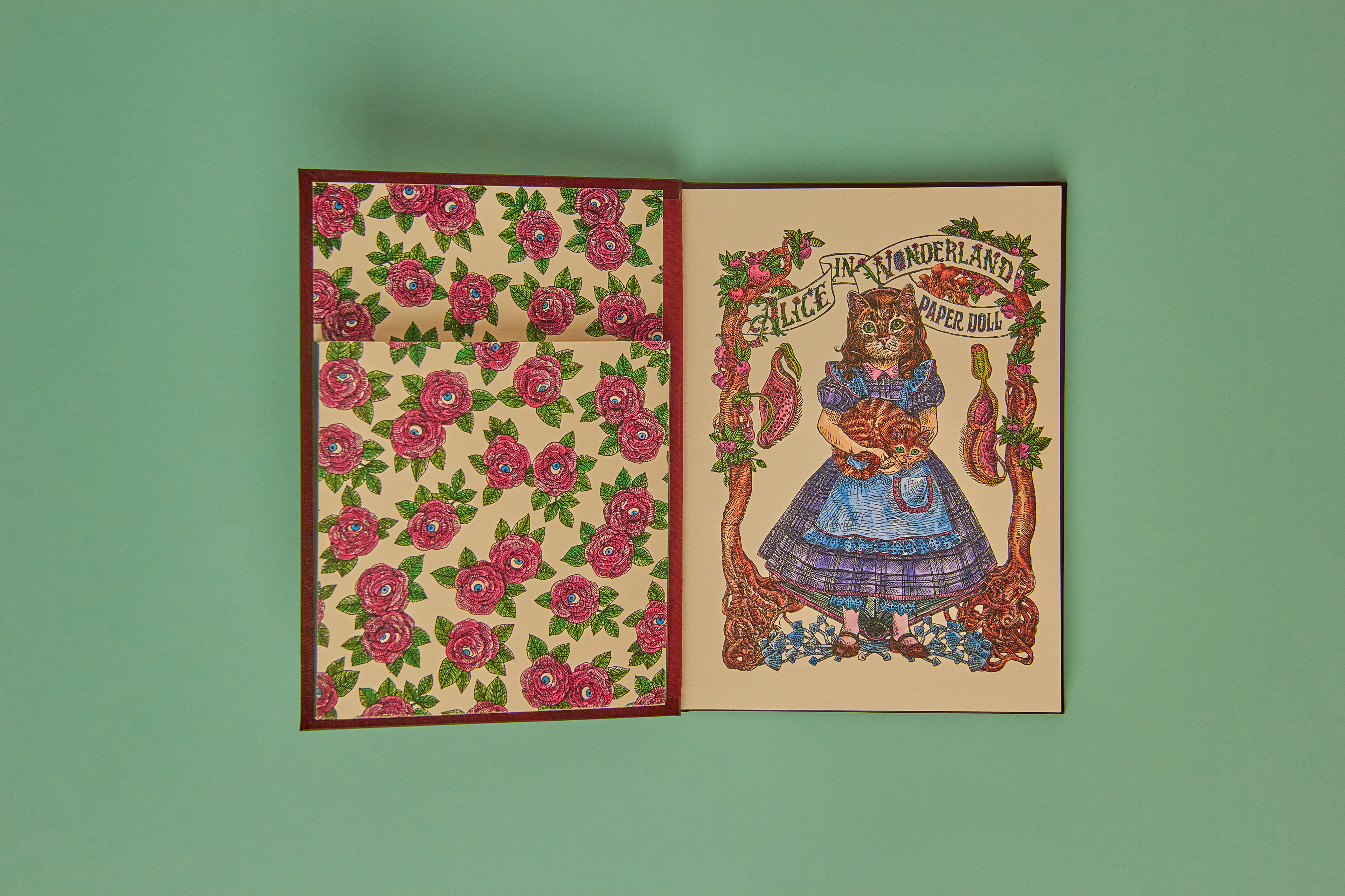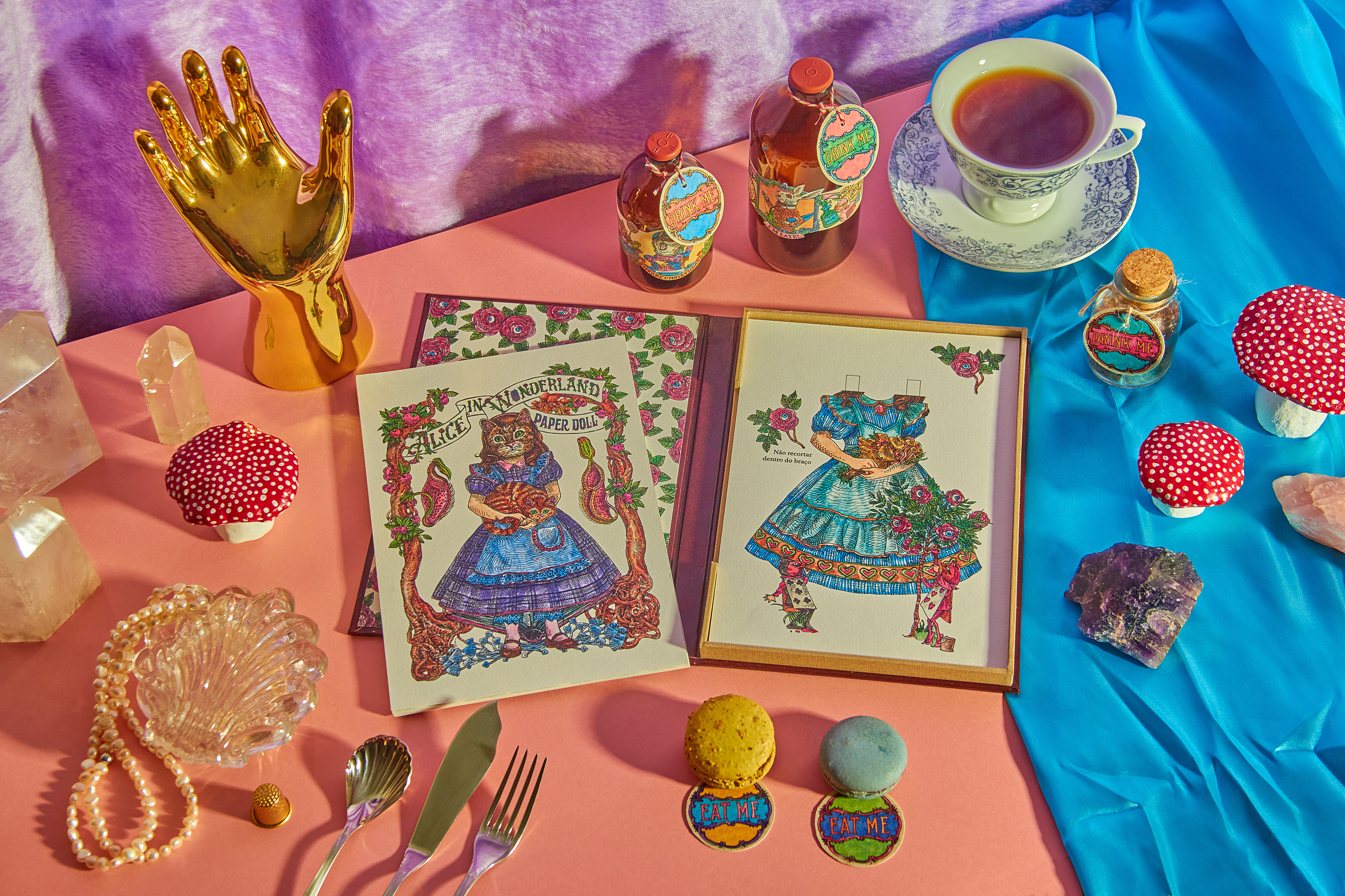 "Alice in Wonderland PaperDoll" was a personal project. An activity book where the paper is one of the main characters. It pays tribute to Lewis Caroll literary work "Alice in Wonderland" and the first artistic interpretation from the great John Tenniel. Alice's (in cat form, of course) character "changes clothes" and the clothes come with the scenarios that she lives throughout the chapters of her story. Some of the most beloved characters have been transformed into articulated paper dolls and there is two pages dedicated to carefully designed labels and tags for various purposes for DIY and scrapbook lovers. The intention of the book for you to have fun with the pages activities- wich are easily detachable or already loose, and the book cover, which was proposed in a box book and binder format, is completely reusable. A simple analog and nostalgic fun in an increasingly less tangible and more virtual world. Photography by Diego Rodrigues Cover Mock-up: Marina Kater Silkscreen on the Cover: Marcelo Heleno