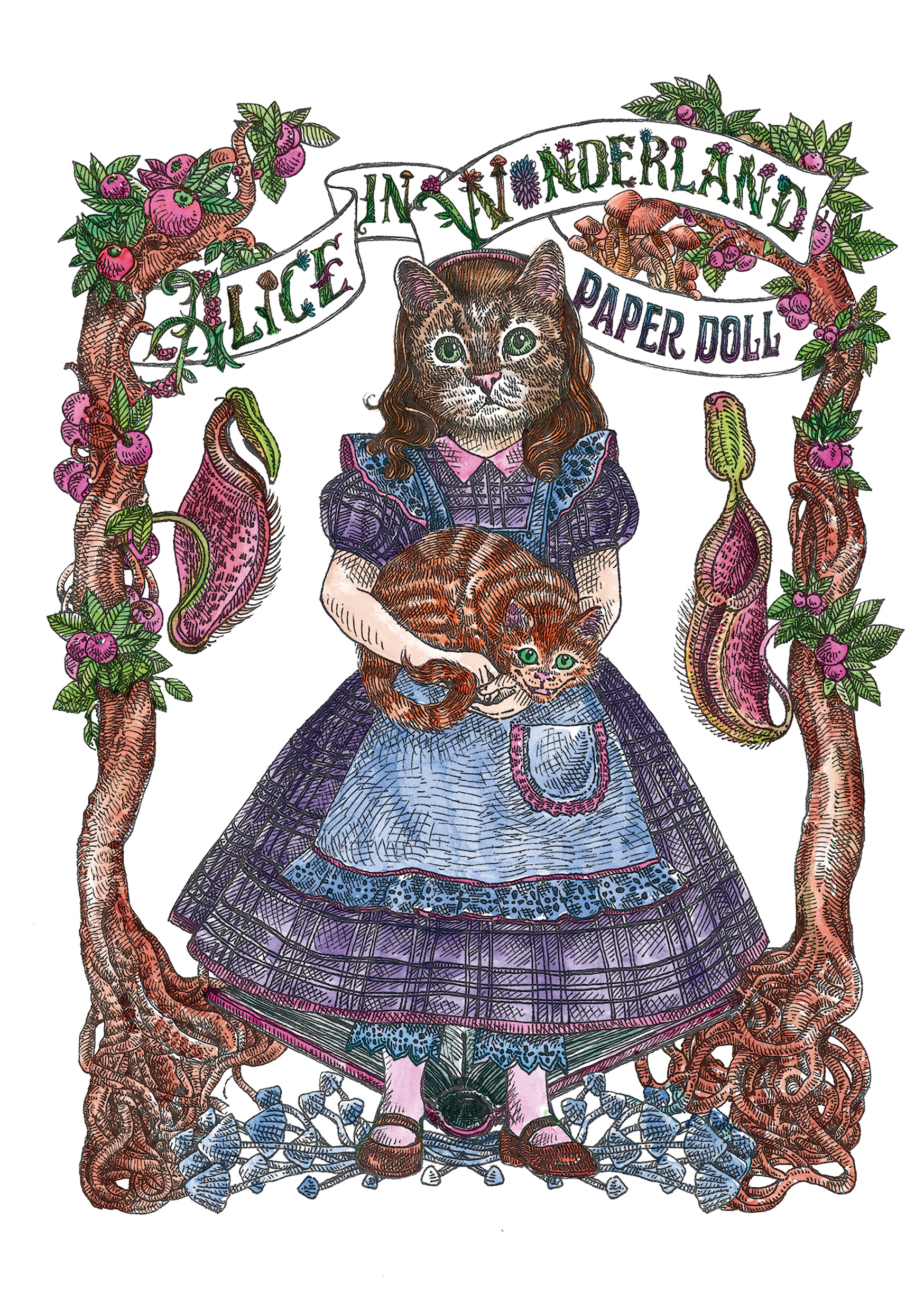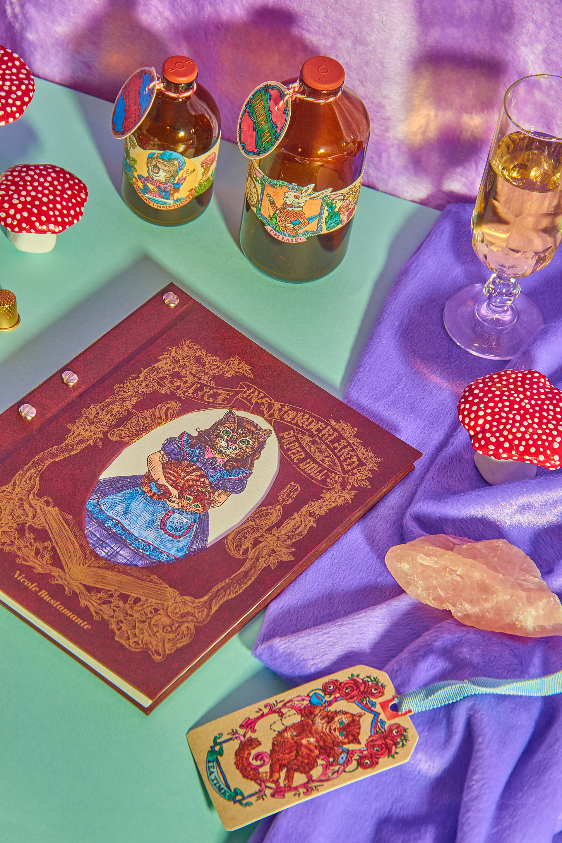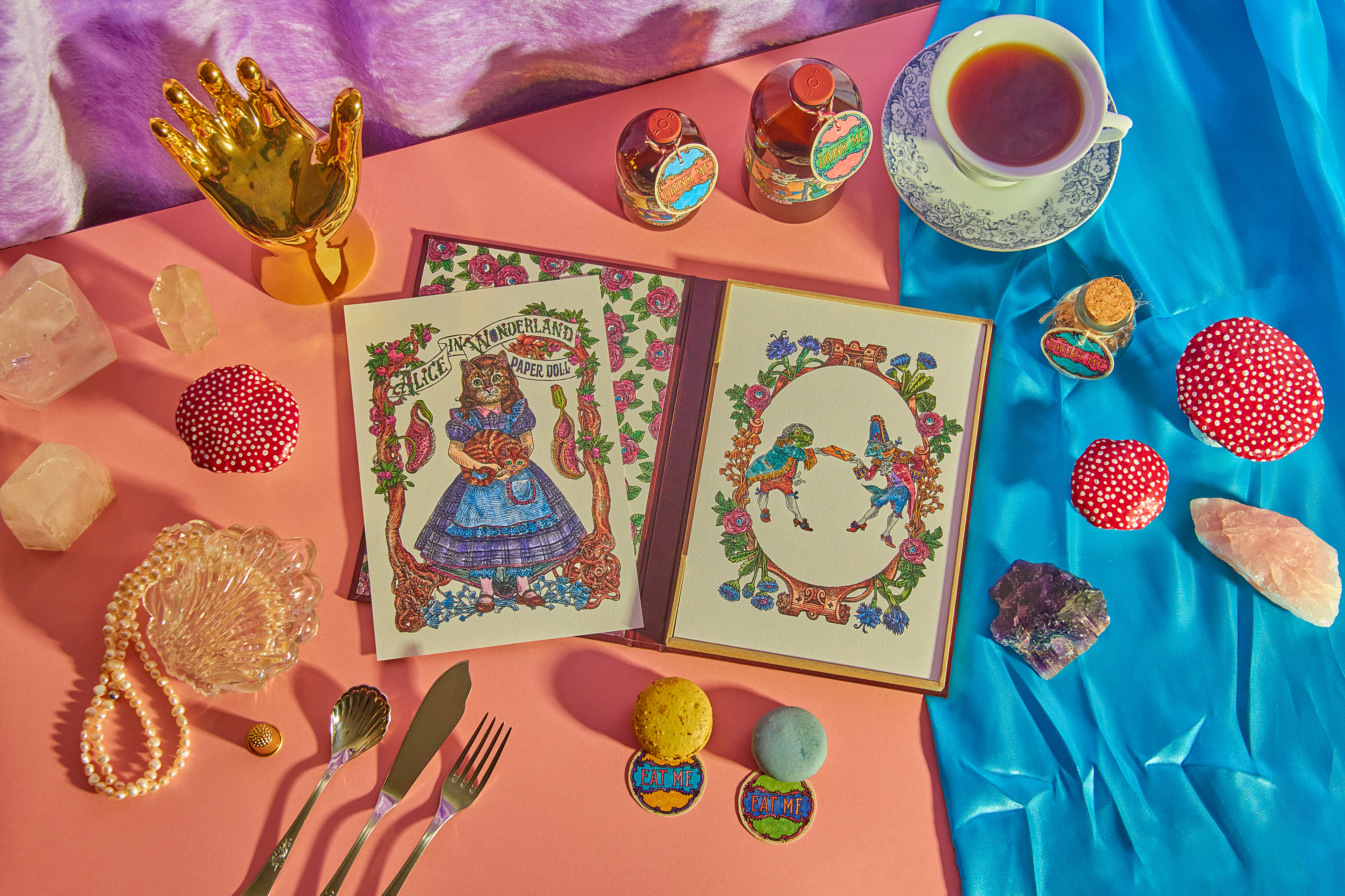 "Alice in Wonderland PaperDoll" was a personal project. An activity book where the paper is one of the main characters. It pays tribute to Lewis Caroll literary work "Alice in Wonderland" and the first artistic interpretation from the great John Tenniel. Alice's (in cat form, of course) character "changes clothes" and the clothes come with the scenarios that she lives throughout the chapters of her story. Some of the most beloved characters have been transformed into articulated paper dolls and there is two pages dedicated to carefully designed labels and tags for various purposes for DIY and scrapbook lovers. The intention of the book for you to have fun with the pages activities- wich are easily detachable or already loose, and the book cover, which was proposed in a box book and binder format, is completely reusable. A simple analog and nostalgic fun in an increasingly less tangible and more virtual world. Photography by Diego Rodrigues Cover Mock-up: Marina Kater Silkscreen on the Cover: Marcelo Heleno