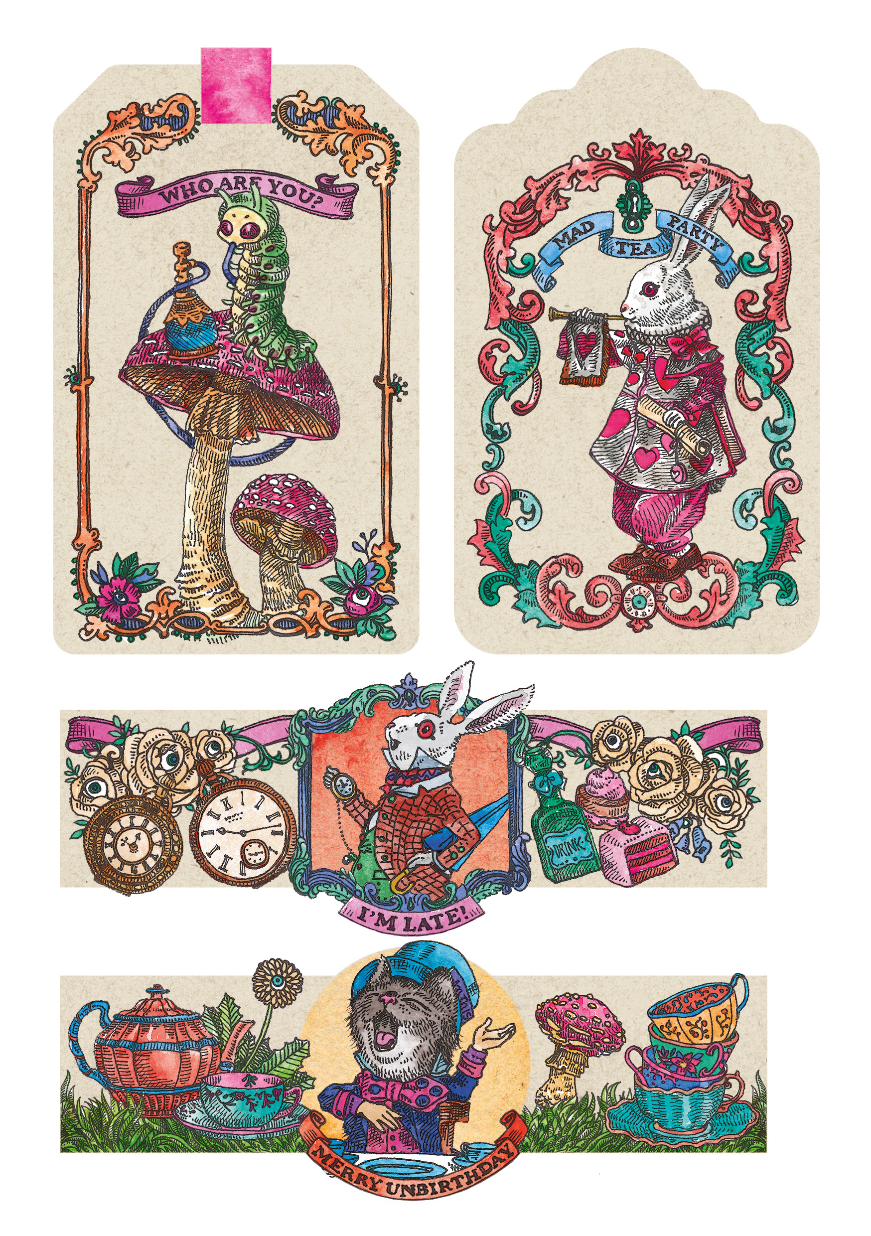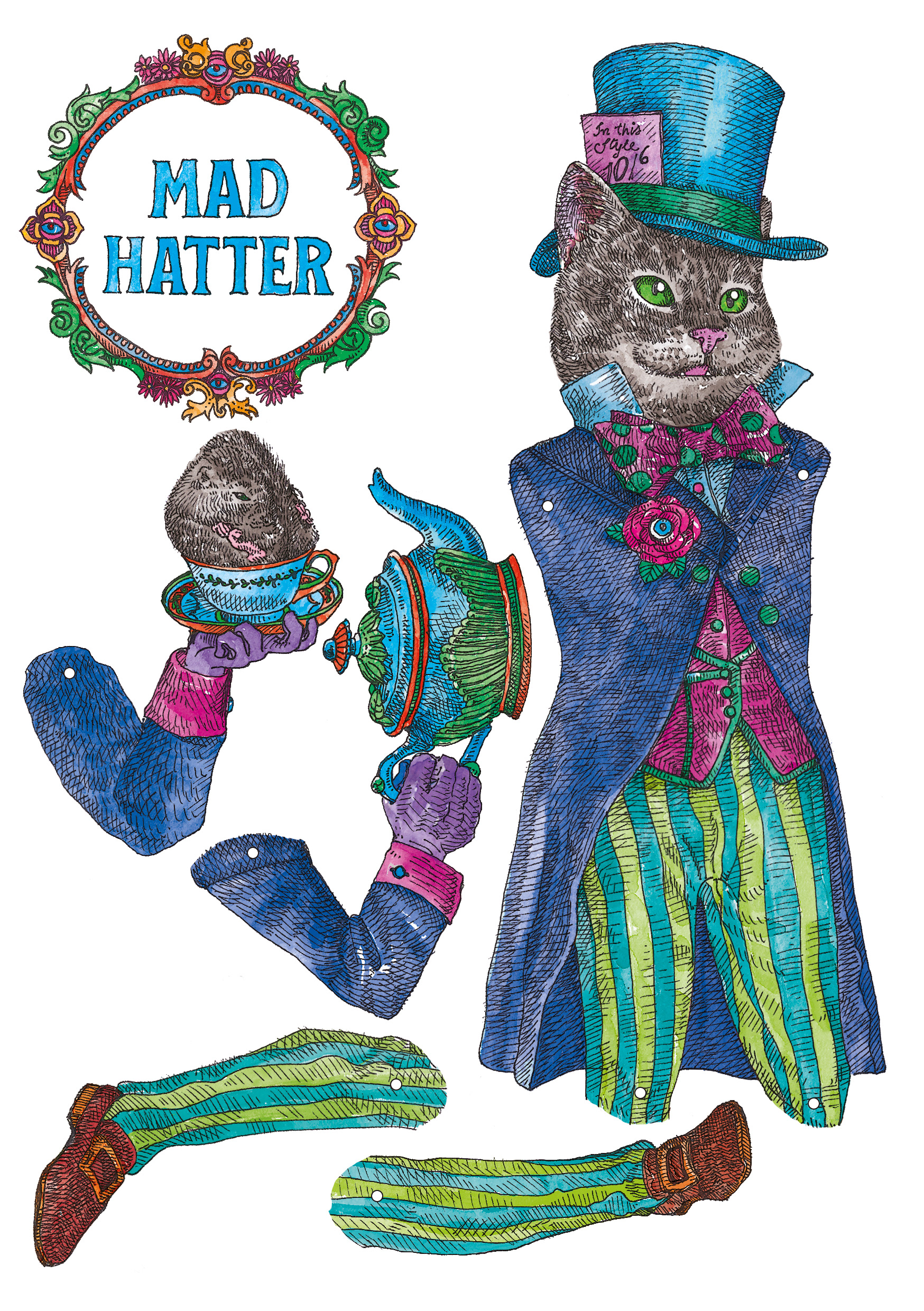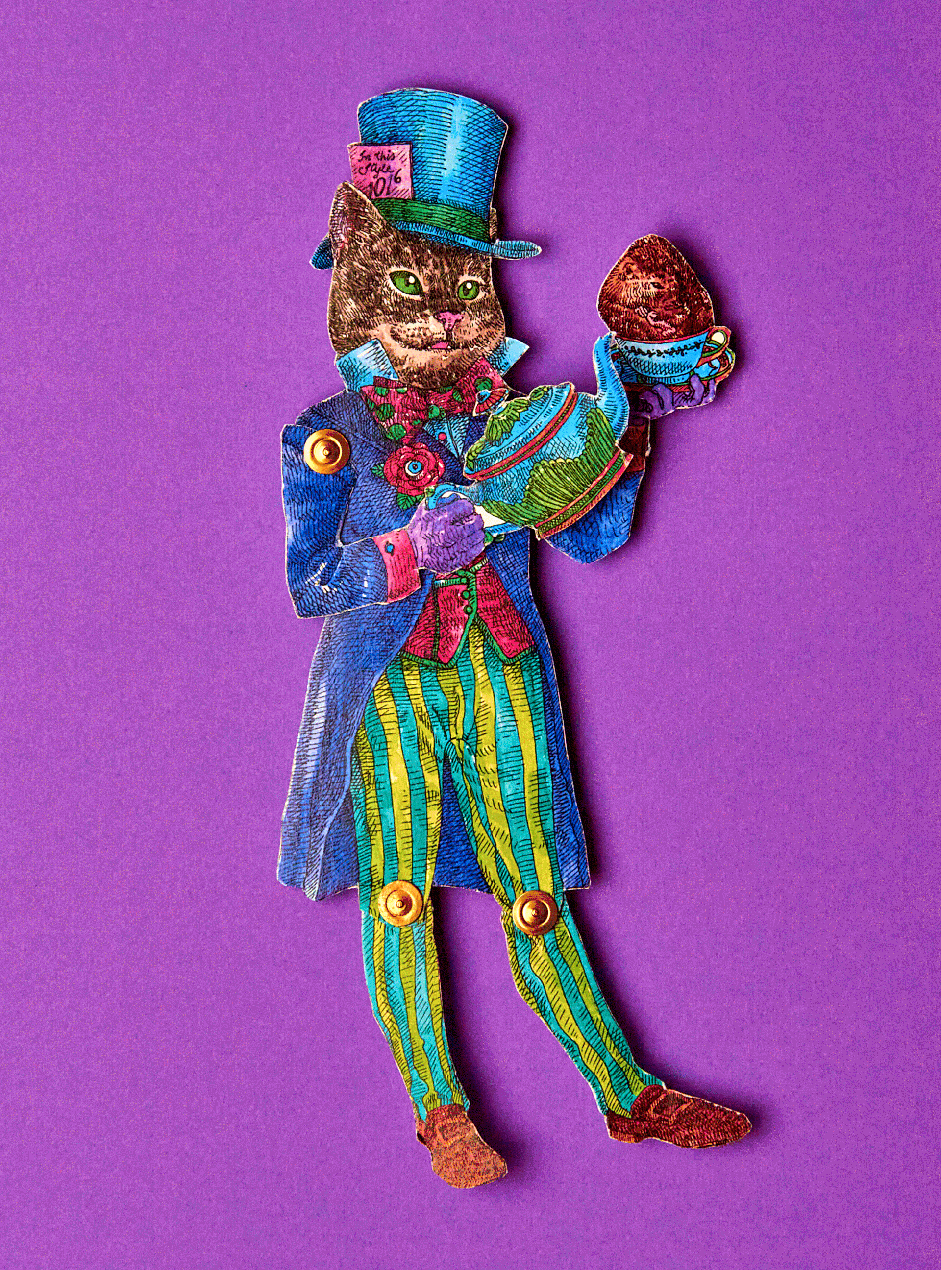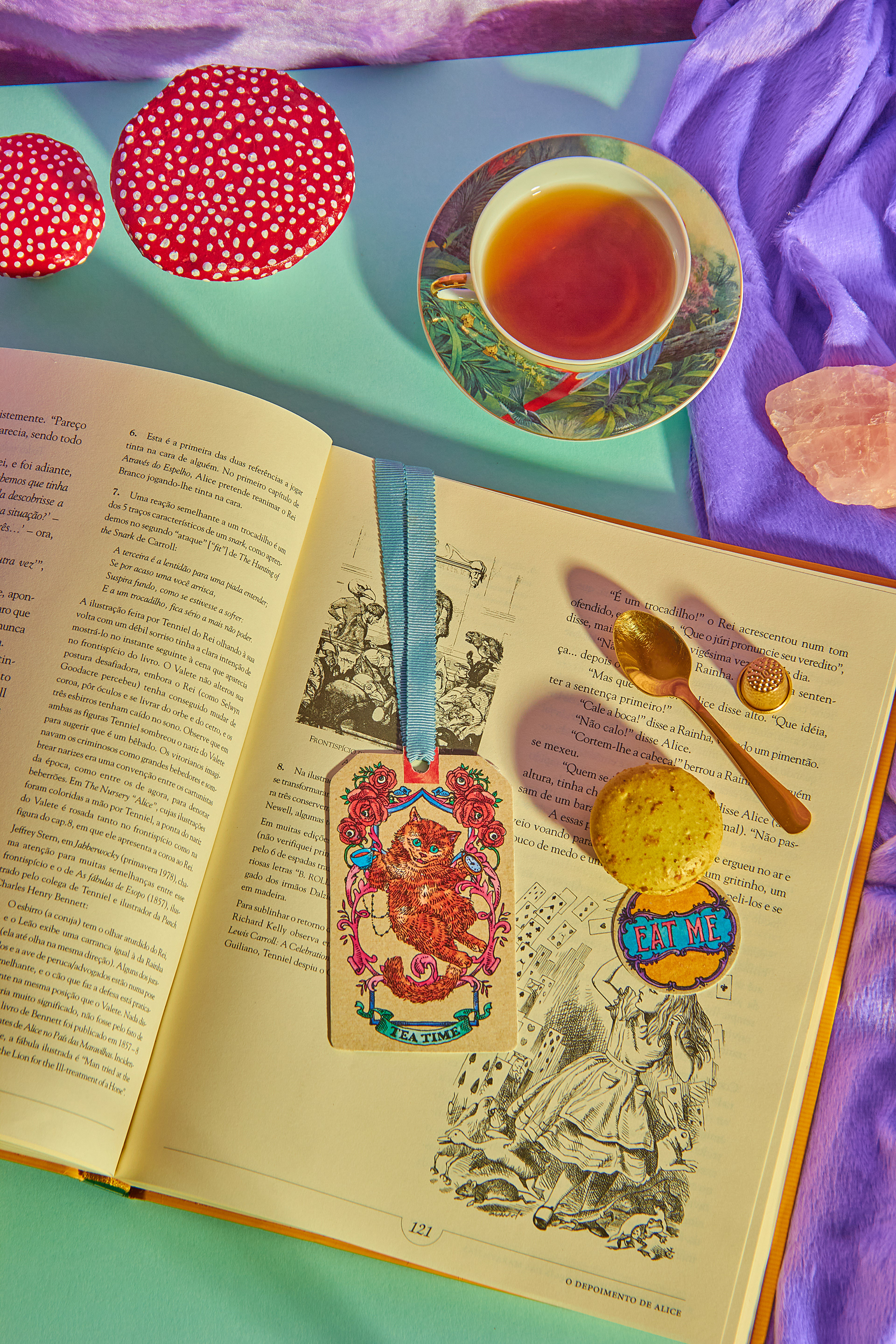 "Alice in Wonderland PaperDoll" was a personal project. An activity book where the paper is one of the main characters. It pays tribute to Lewis Caroll literary work "Alice in Wonderland" and the first artistic interpretation from the great John Tenniel. Alice's (in cat form, of course) character "changes clothes" and the clothes come with the scenarios that she lives throughout the chapters of her story. Some of the most beloved characters have been transformed into articulated paper dolls and there is two pages dedicated to carefully designed labels and tags for various purposes for DIY and scrapbook lovers. The intention of the book for you to have fun with the pages activities- wich are easily detachable or already loose, and the book cover, which was proposed in a box book and binder format, is completely reusable. A simple analog and nostalgic fun in an increasingly less tangible and more virtual world. Photography by Diego Rodrigues Cover Mock-up: Marina Kater Silkscreen on the Cover: Marcelo Heleno