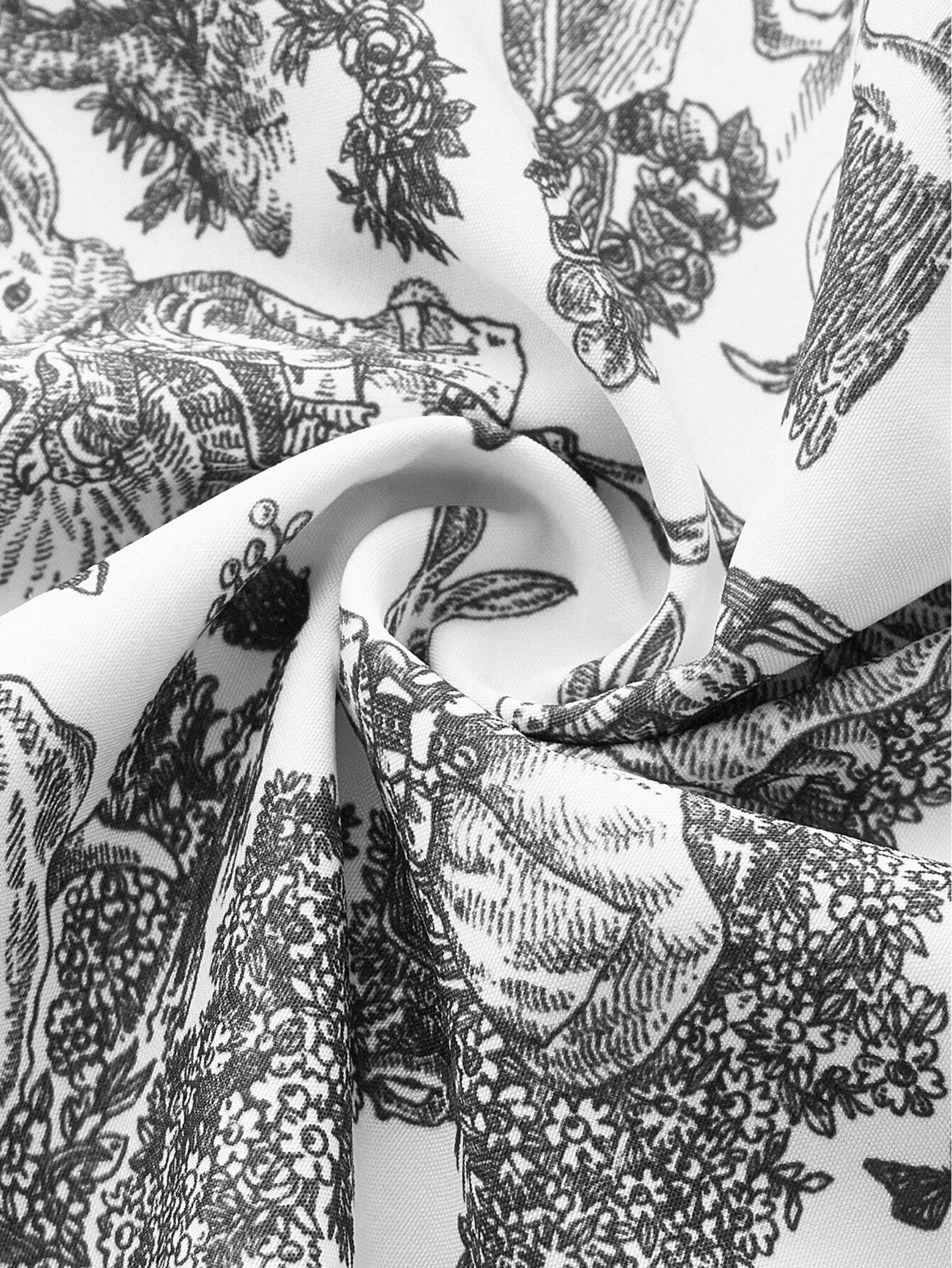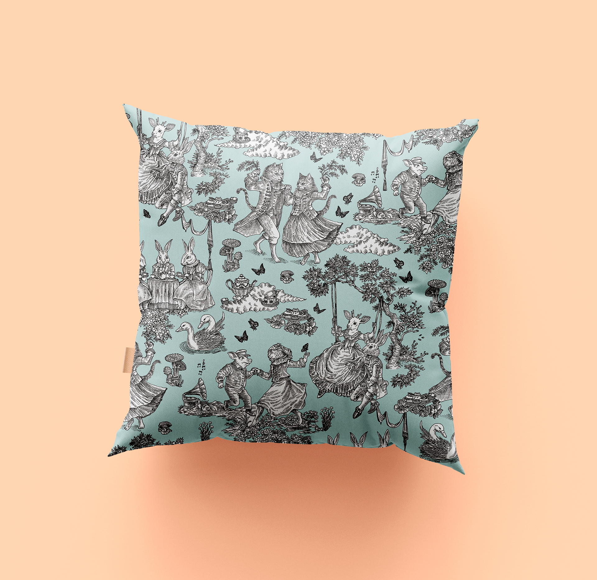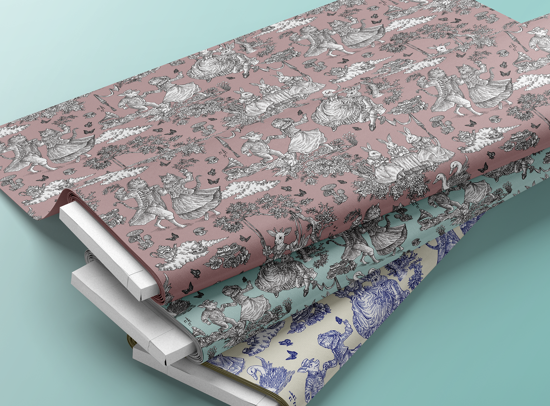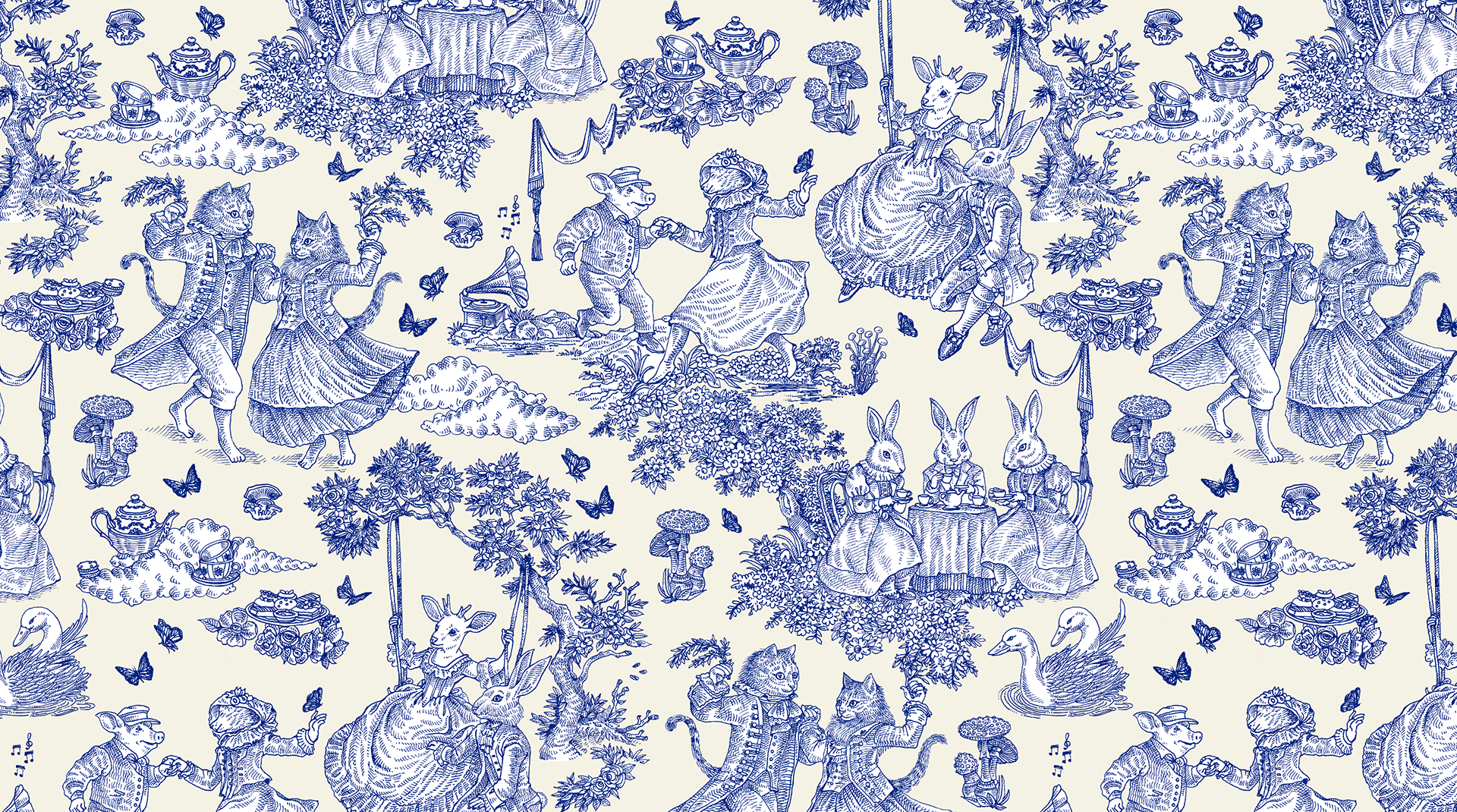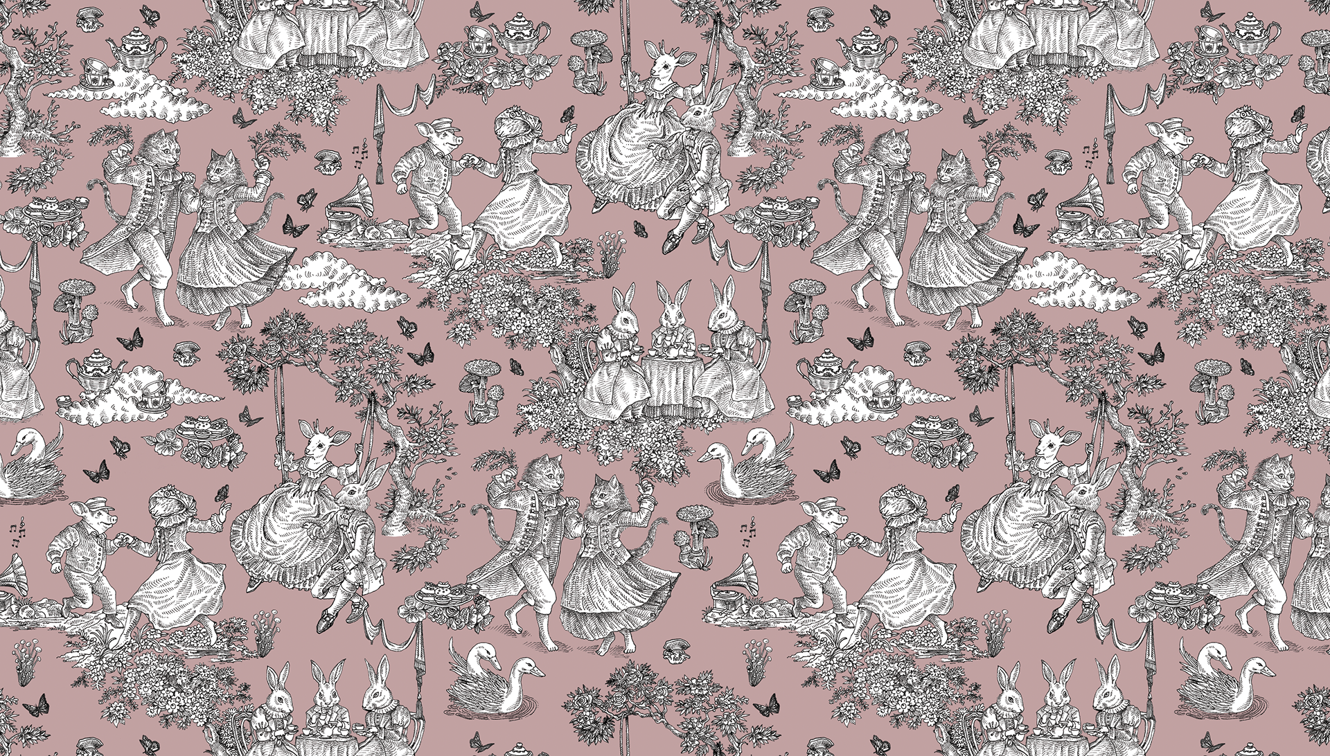 An exclusive print was made for the SHEIN x Nicole Bustamante Collab—a fantasy animal-themed Toile de Jouy, completely handmade in Indian ink; turned into various products.