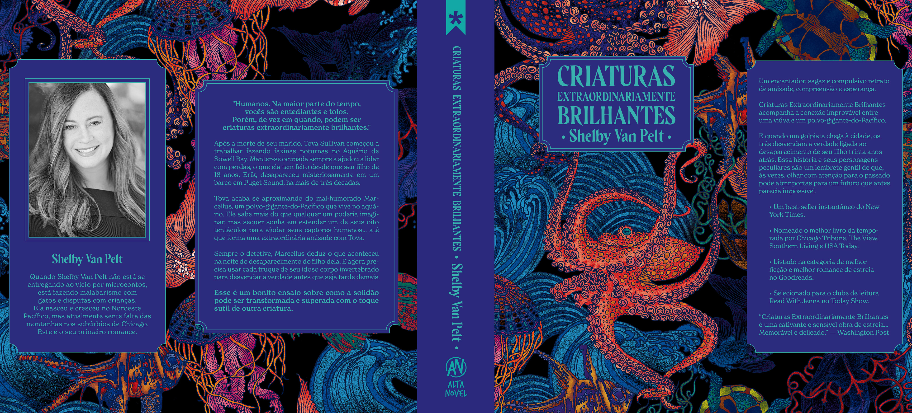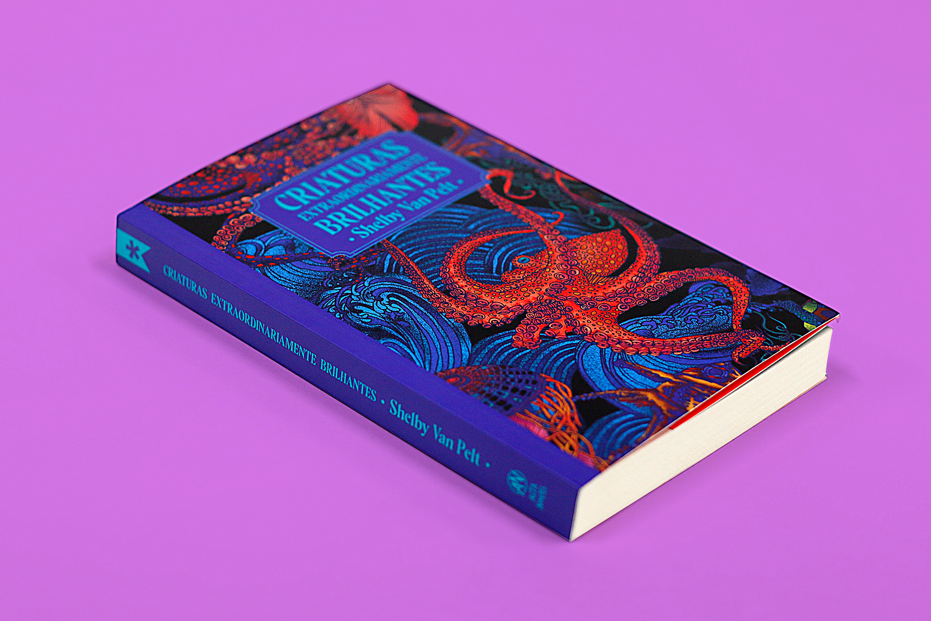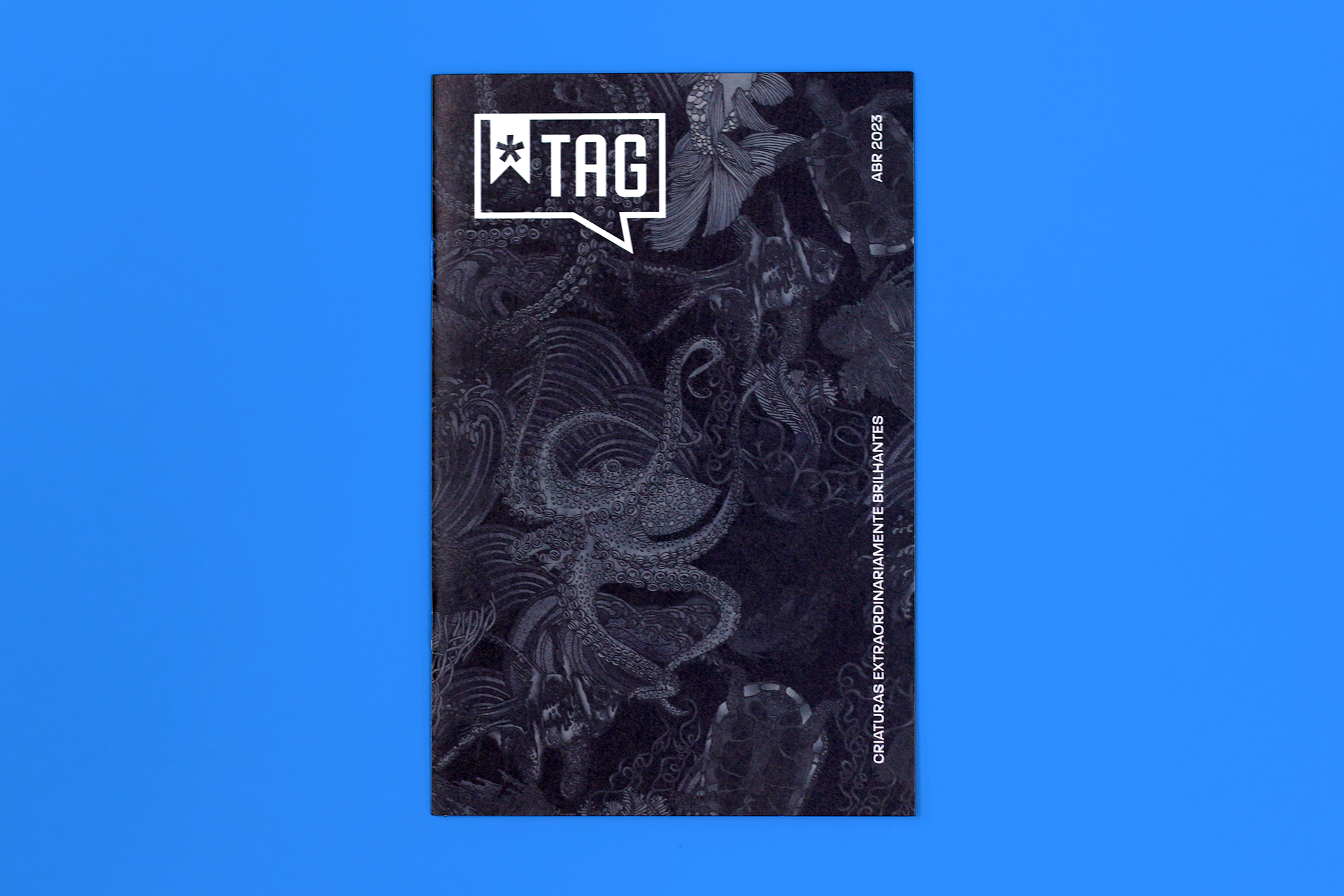 Illustration and graphic design of the TAG Livros kit of April 2023. The kit includes book cover, glove, TAG magazine and gifts for Brazilian edition of "Remarkably Bright Creatures" or "Criaturas Extraordinariamente Brilhantes" by Shelby Van Pelt. Client: Tag Livros + Alta Books Art Direction & Design: Nicole Bustamante and Bruno Miguell Illustration: Nicole Bustamante