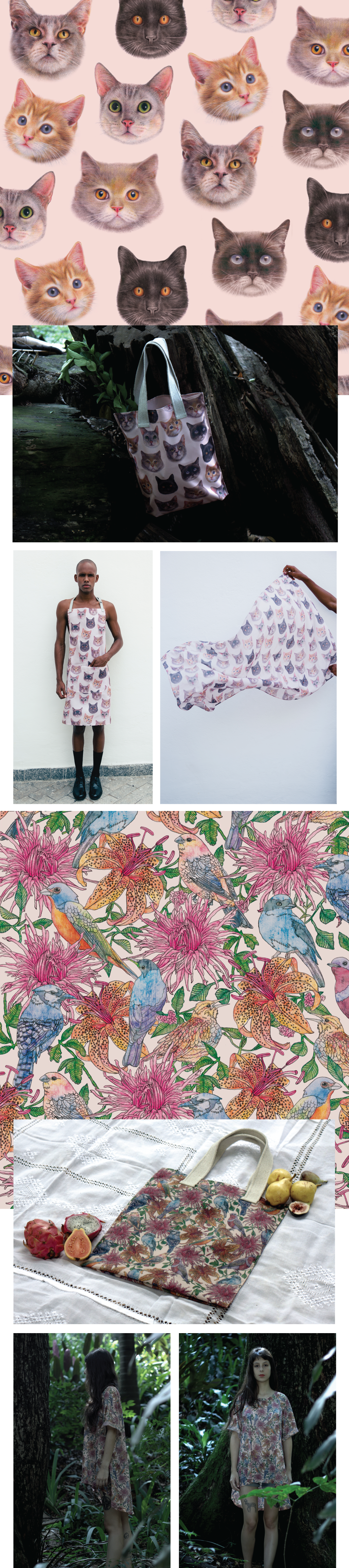 In April 2014, I launched a vegan clothing brand, "Nicole Bustamante-Vegan Goods," in a small collaborative space. Using my own resources and establishing partnerships with other small businesses and independent artists. It was one of the first brands (big or small) in Brazil to work with the concept of veganism in fashion. We operated from 2014 to 2019. These are handmade patterns that served as a surface for different types of products that were sold in the online shop. Campaign concept and products: Nicole Bustamante Creative Direction: Marcio Lurici Photography: David Barkan, Diego Rodrigues, Edgar Oliveira Make up artist: Anna Rita Trunkl Models: Andrew Vinco, Douglas Rezende, Giuliana Kaori, Tania Borges and Stephanie Hardt
