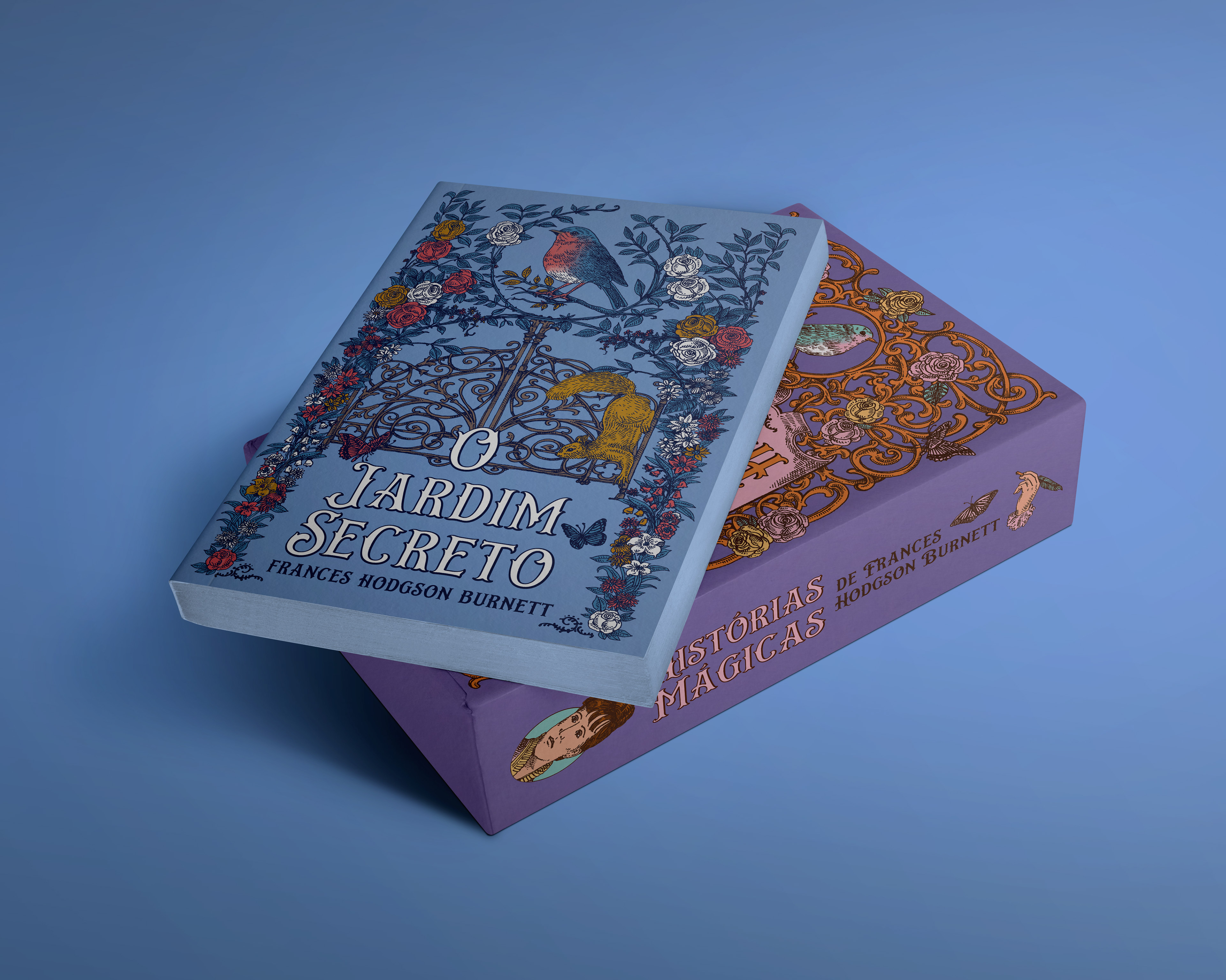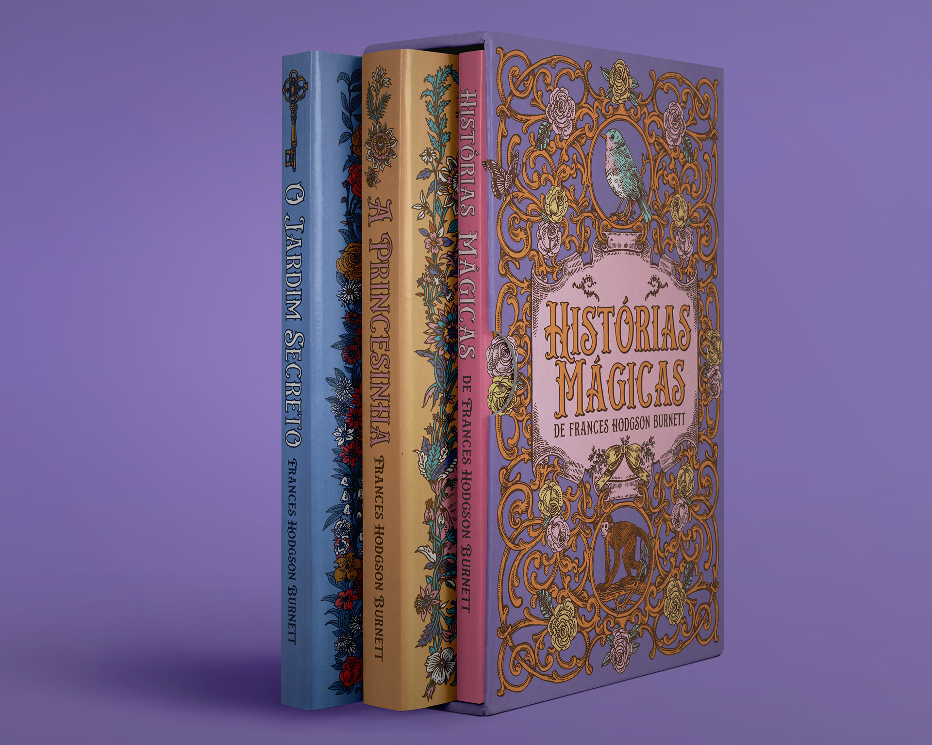 Design and illustration for the box "Histórias Mágicas de Frances Hogson Burnett" ("Magic Tales of Frances Hogson Burnett"). The box comes with her most beloved works, "A Princesinha"("A Little Princess") and "O Jardim Secreto" ("The Secret Garden"). Launched by Editora Pandorga. Client: Editora Pandorga Illustration: Nicole Bustamante