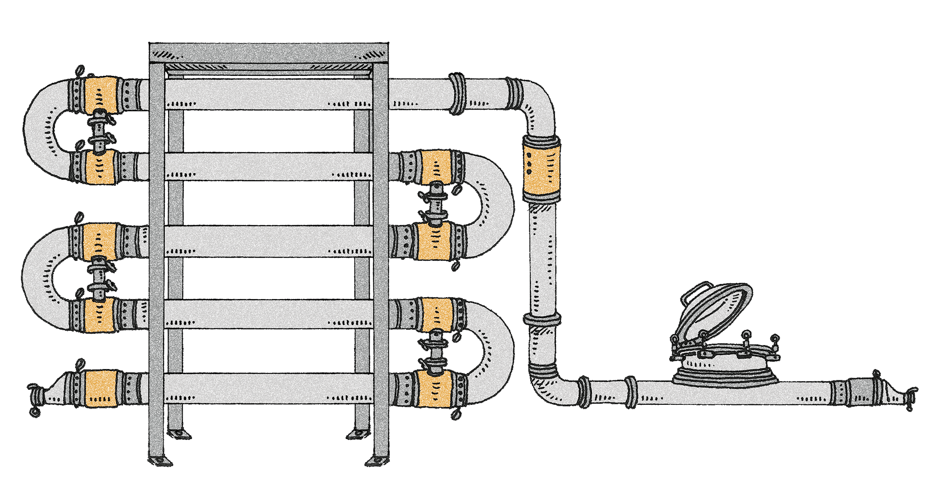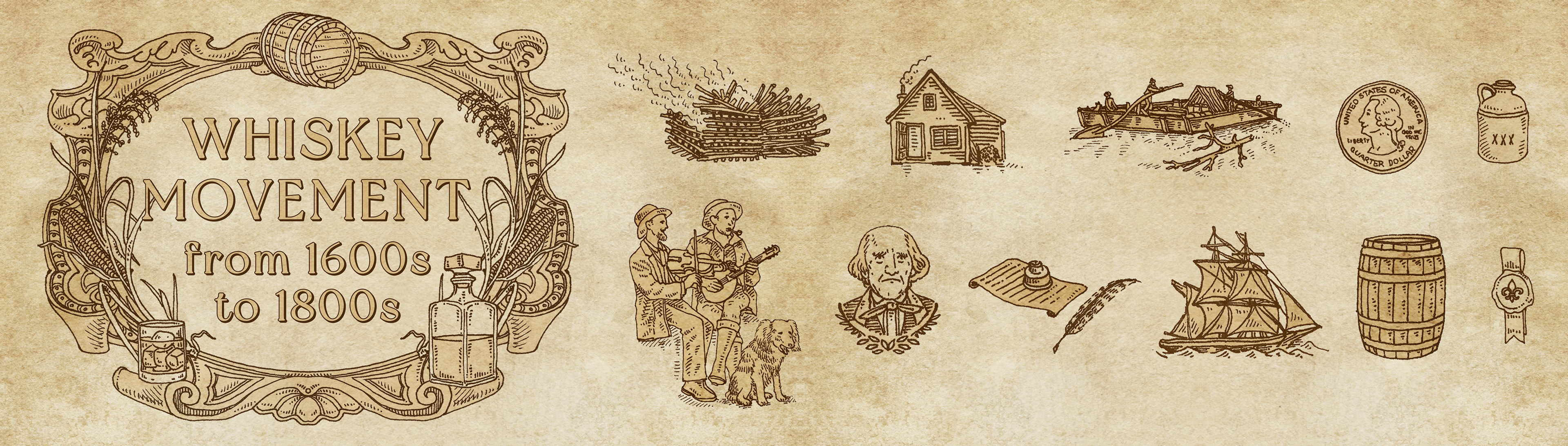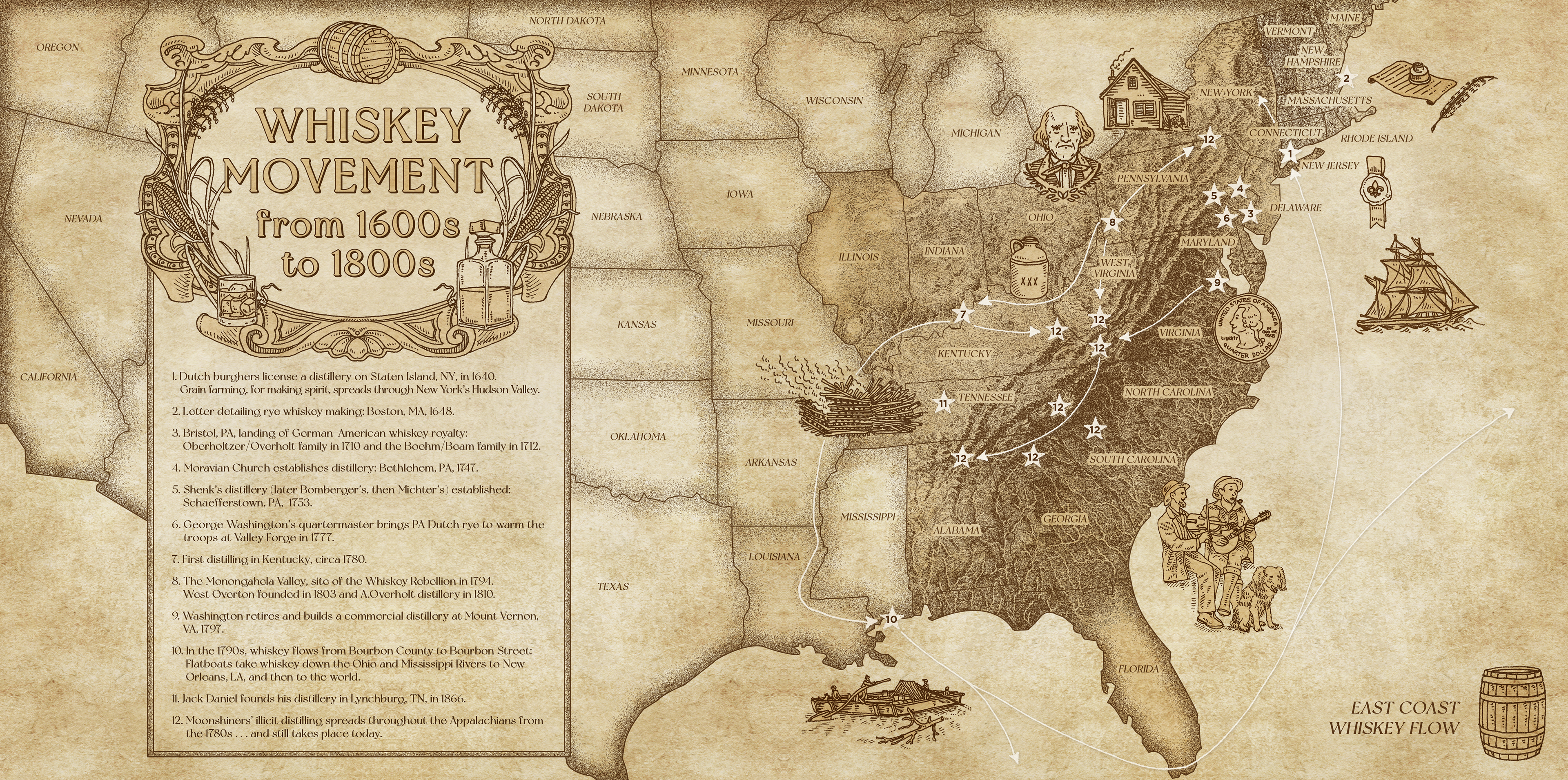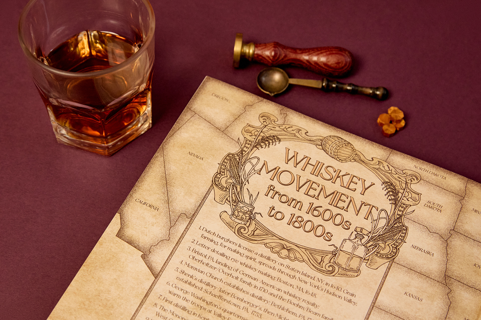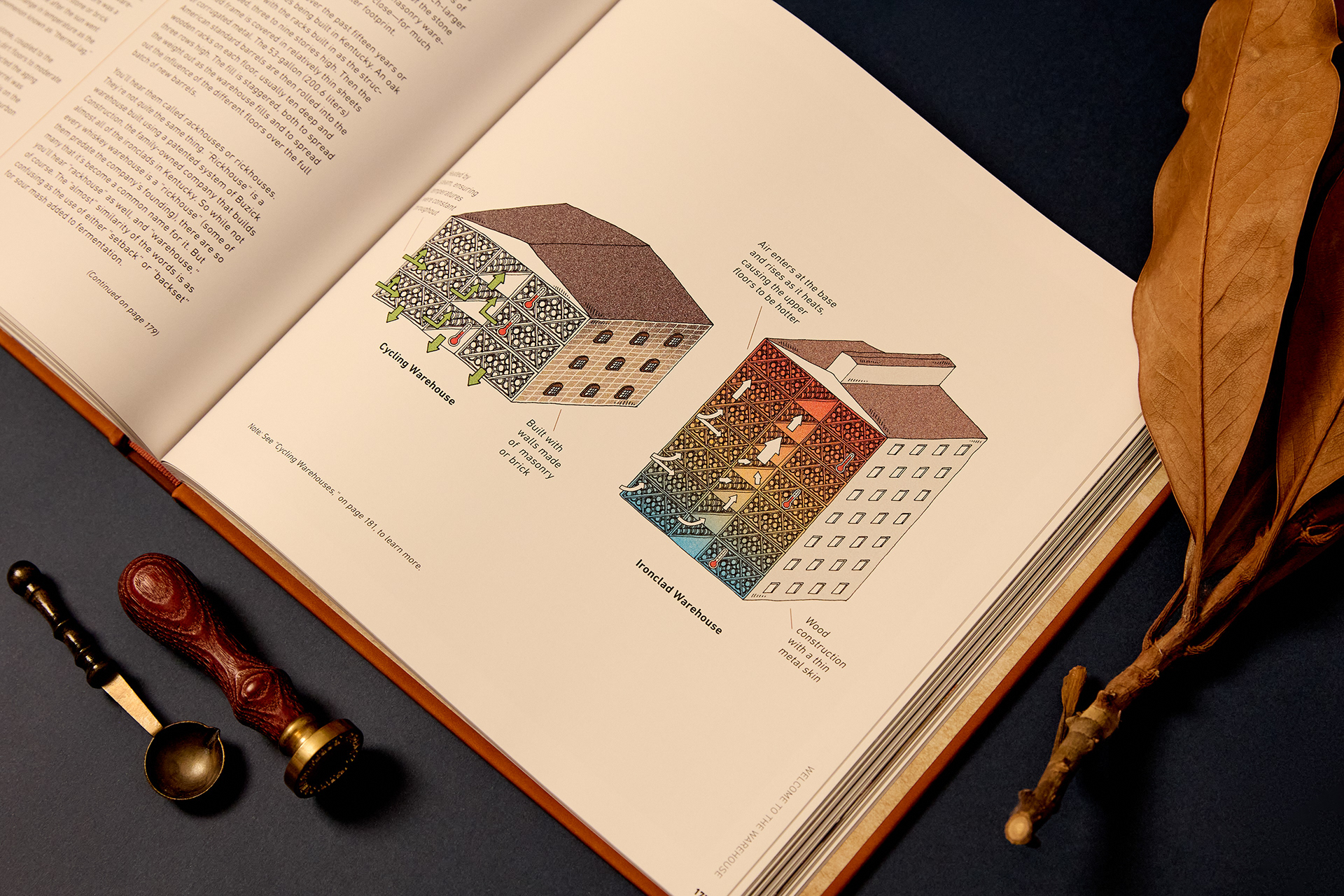 Illustrations created for a Special Edition of "American Whisky Master Class" by Lew Bryson. Hand-drawn map illustration for the endpaper and interior illustrations that help understand the whisky production process, all inspired by vintage technical manuals.